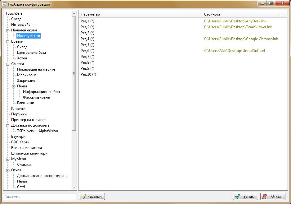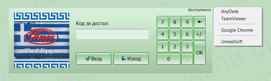 Менюто "Инструменти" стои в началния екран.